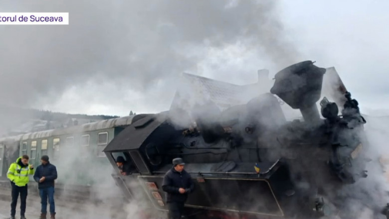 Locomotiva Mocăniței a deraiat pe o parte după un accident