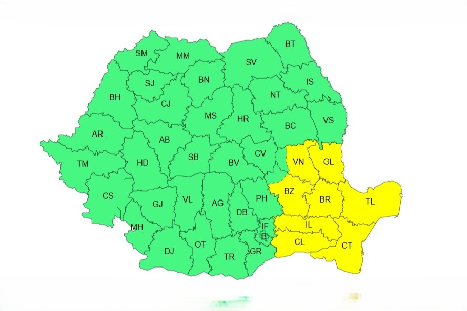 👉 Cod galben pentru intensificări ale vântului în sud-estul României